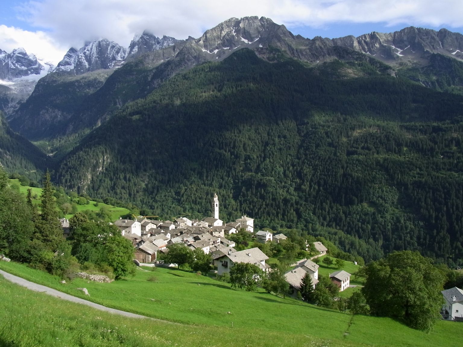 ソーリオ村の詳しい情報はスイス政府観光局のサイトやその他ネットの情報をご覧頂きたいのですが、この村は山の中腹に位置しており、この村から見える山並みや村の建物がとても趣があって好きなのです。